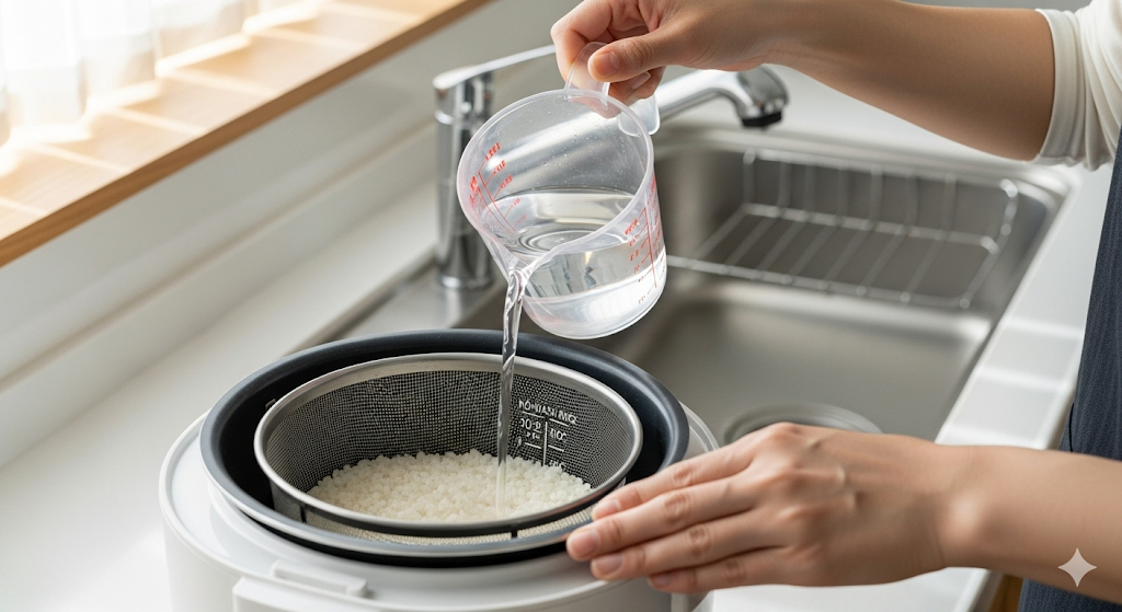 無洗米を美味しく炊くための鍵は、正しい水加減と十分な浸水時間です。ここでは、失敗なくふっくらと炊き上げるための具体的な手順を解説します。
